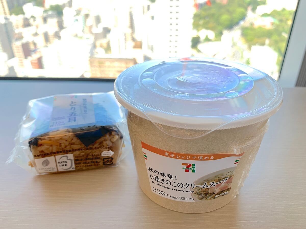迷ったら、「きのこのスープ」+「とり五目おにぎり」でいきましょう。おすすめの組み合わせです。