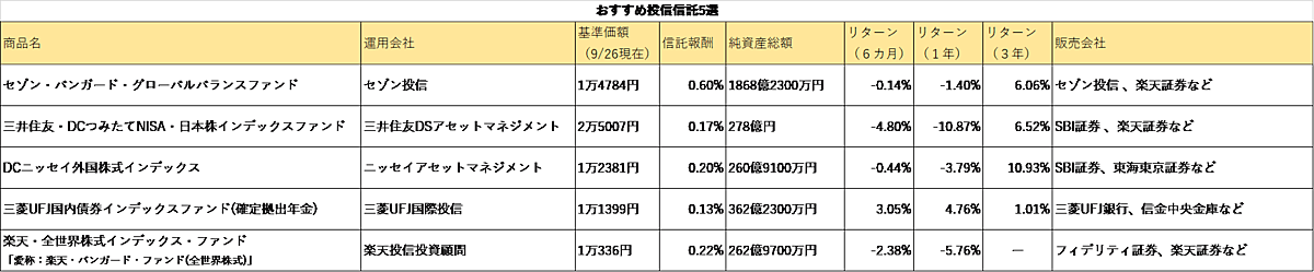 ここからは、iDeCoで運用するのにおすすめの投資信託を5つ紹介していきます。