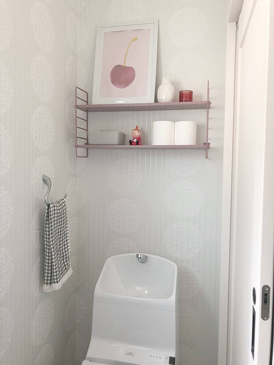 何もないトイレでしたが、棚を取り付けたことでインテリアも置けて雰囲気が変わりました。さらに、トイレットペーパーやクリーナーも置くことができ、便利にもなりました。