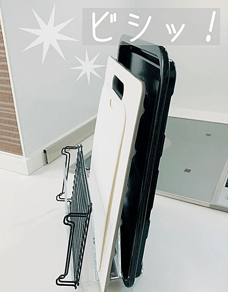 @vanpirehimeさんは、まな板の置き場所に悩んでいたところ、マガジンラックを応用することをひらめいたそう。