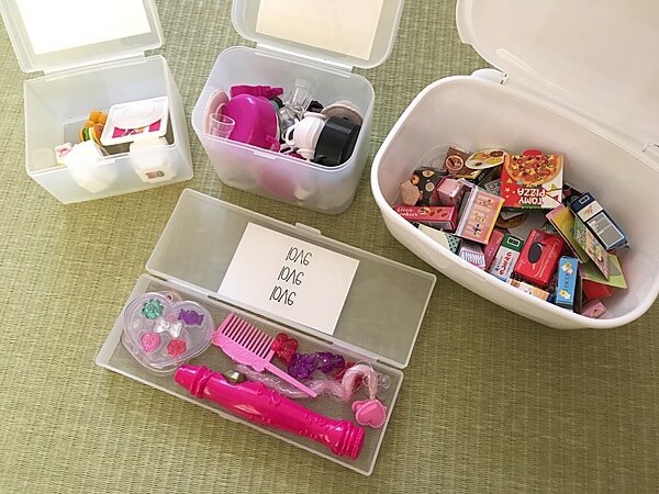 リカちゃんの小物はゆる〜い分類で、子どもも簡単に片付けできる仕組みに