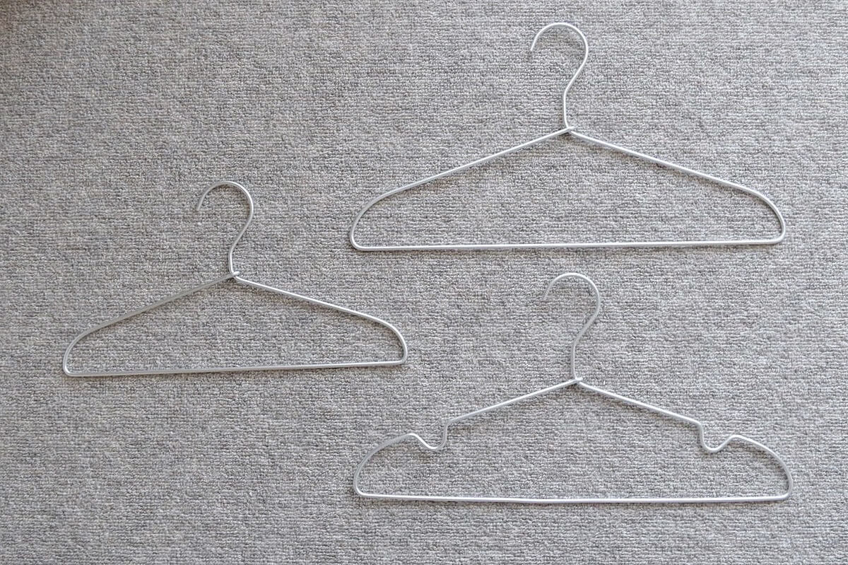 無印良品のアルミ角型ハンガーはサイズが数種類あり、わが家ではサイズ違いで3種類愛用しています。