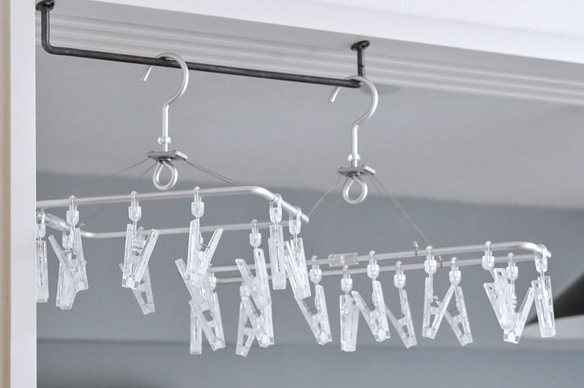 トレーナーなど厚手で乾きにくい衣類は子どものものも大人サイズ(幅41cm)を使うと重なりがなくなり乾きやすくなるので、これからの季節にはおすすめですよ。