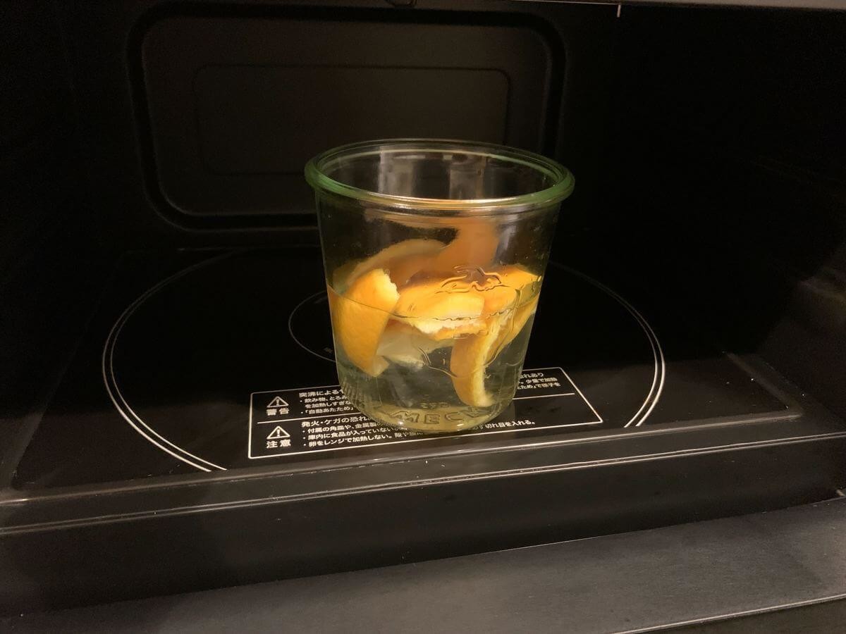 3分加熱して15分放置!オレンジの皮で汚れを落とす