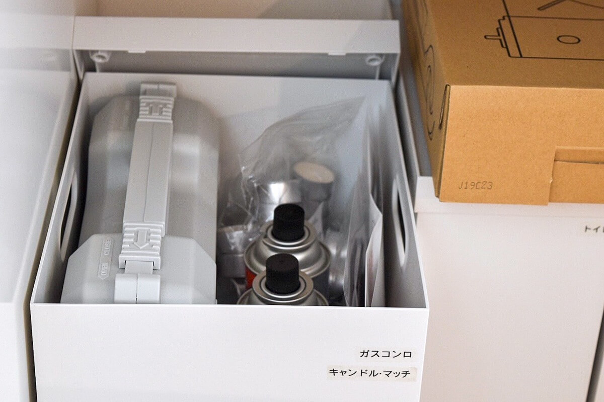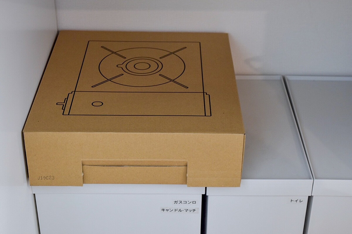 あとで購入したカセットこんろは、専用ケースがないのが残念ポイントと思っていたのですが、購入した際の段ボールをそのままケースとして使えることが分かり、段ボールに入れて収納しています。