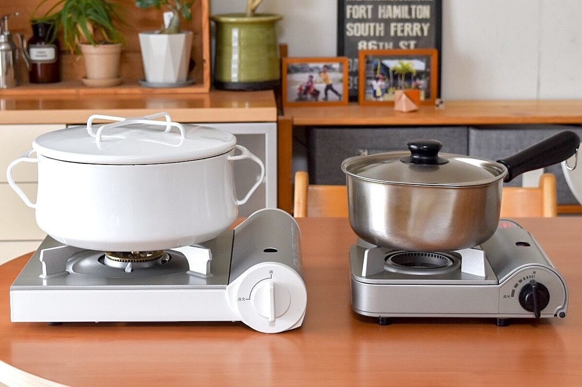 もしもの備えは“災害時にちゃんと使えること”が重要なので、わが家に合うサイズのカセットこんろ(写真左)も買い足すことにしました。