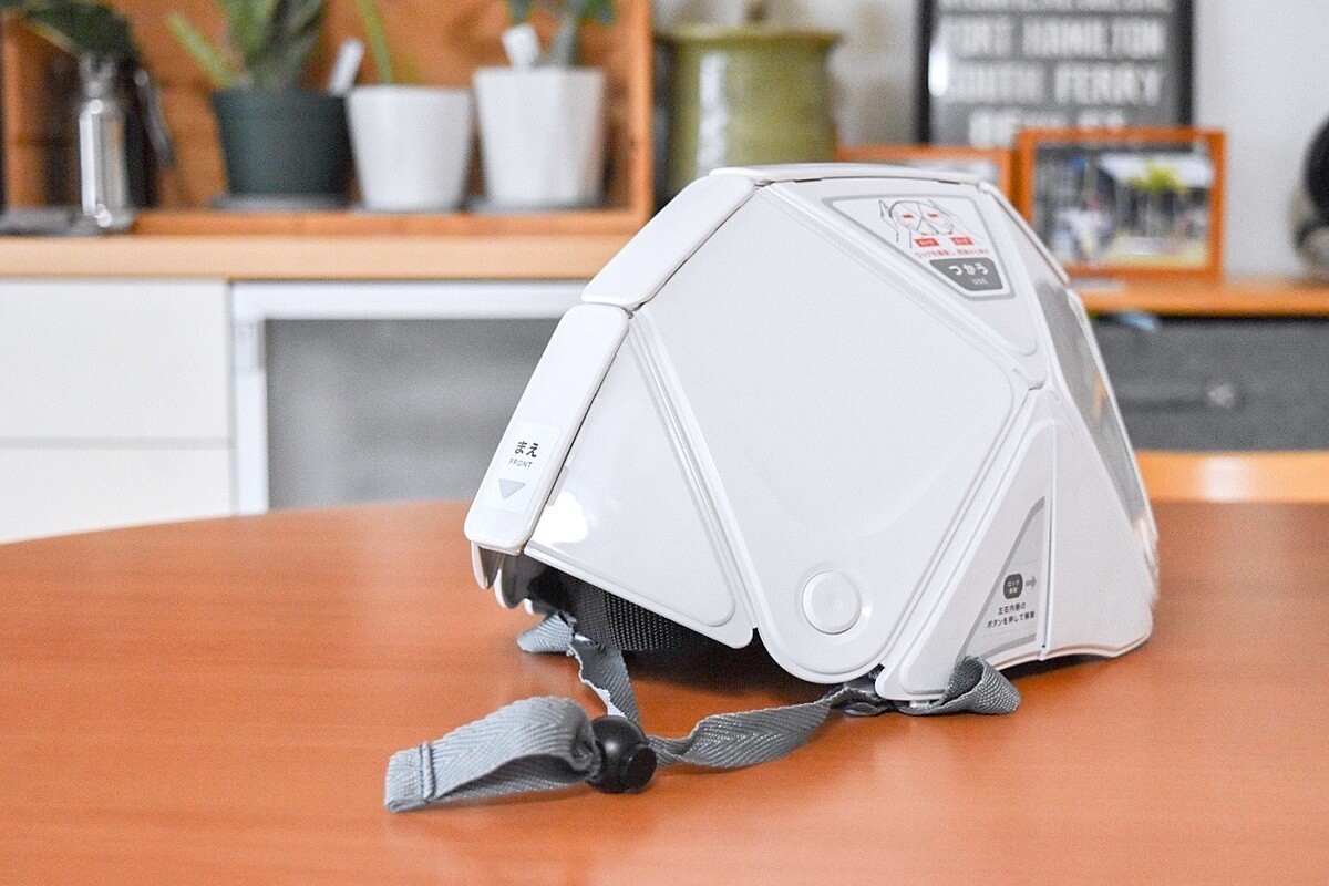 わが家でもう一つ備えている無印良品の防災グッズは、「折り畳めるヘルメット」です。