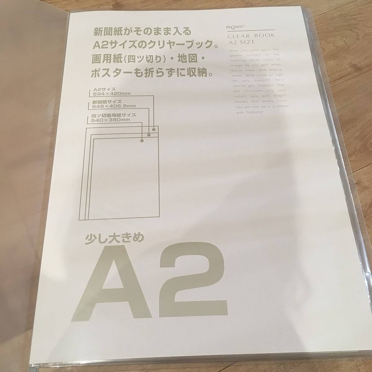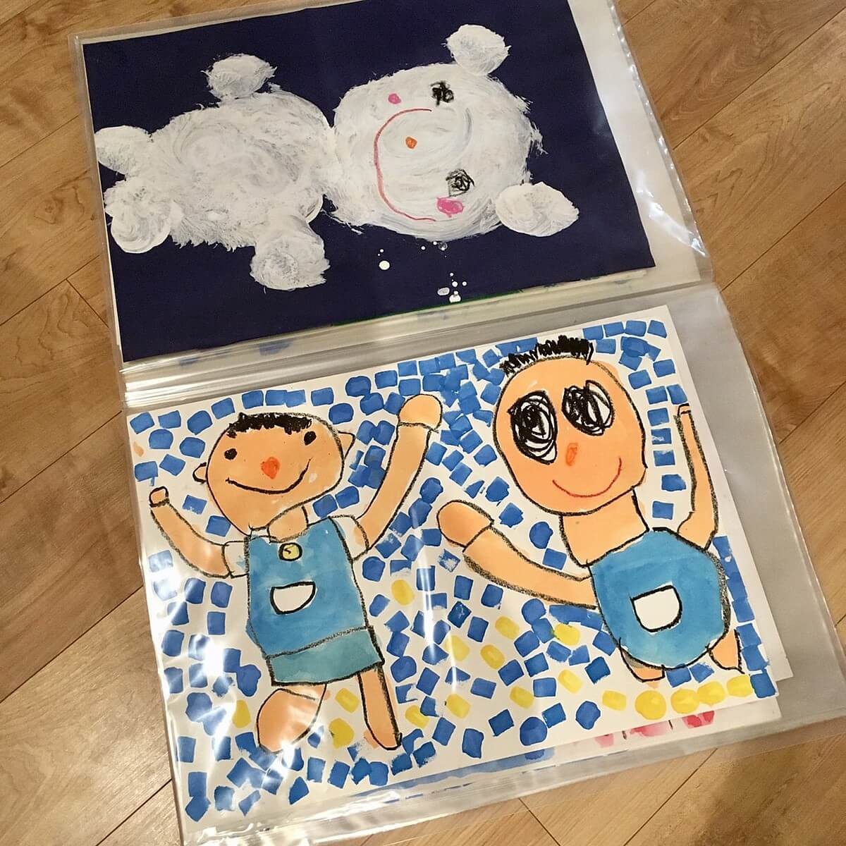 我が家では四つ切り画用紙がすっと入る、A2サイズのファイルを使っています。