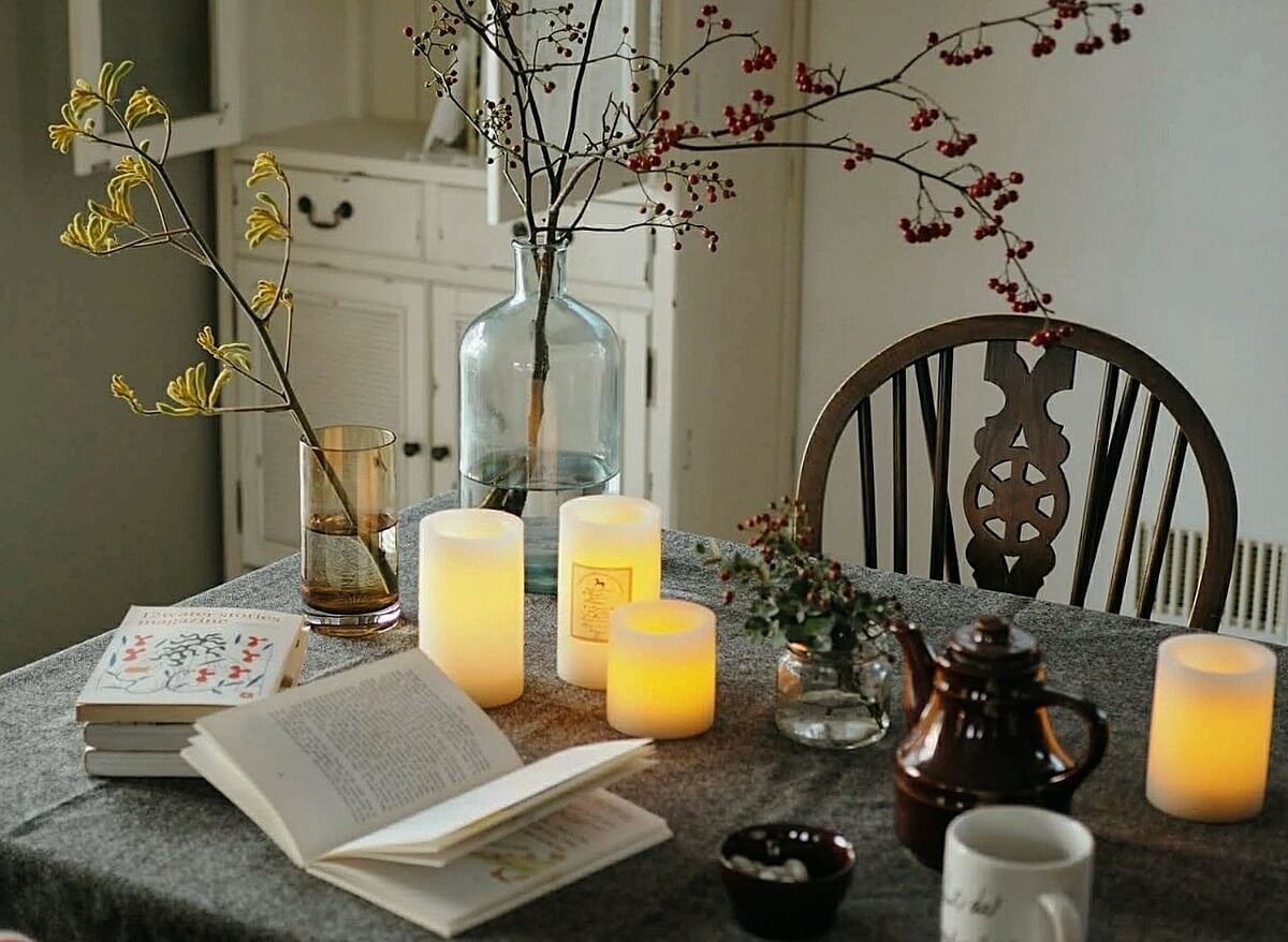 もうすっかりインテリアの定番となったLEDキャンドルライトです。 炎がゆらゆら揺れているように見えるタイプを選べば、リラックス効果も抜群♪
