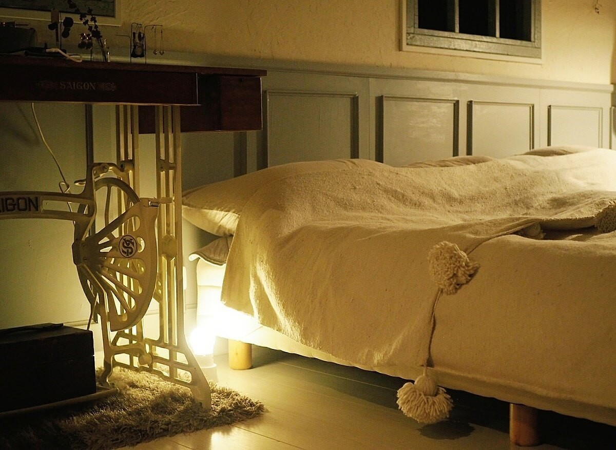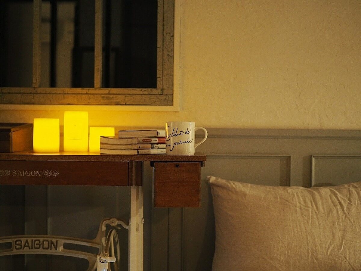 枕元にいつでも使える灯りを常備しておくことは日々の安心感につながります。