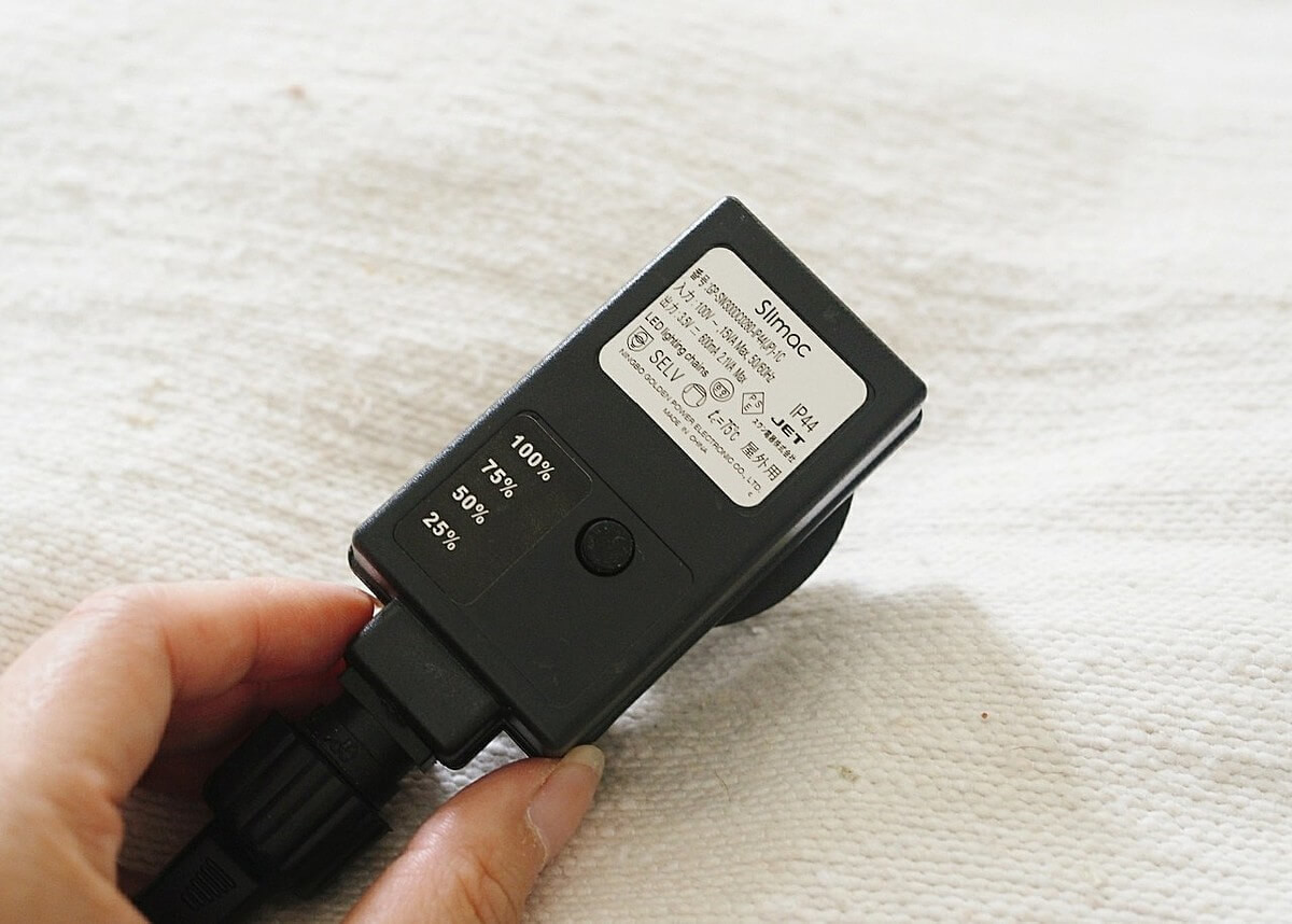 こちらには嬉しい調光機能が付いていて、アダプター部分のスイッチで簡単に4段階に光の強さを調節することができます。