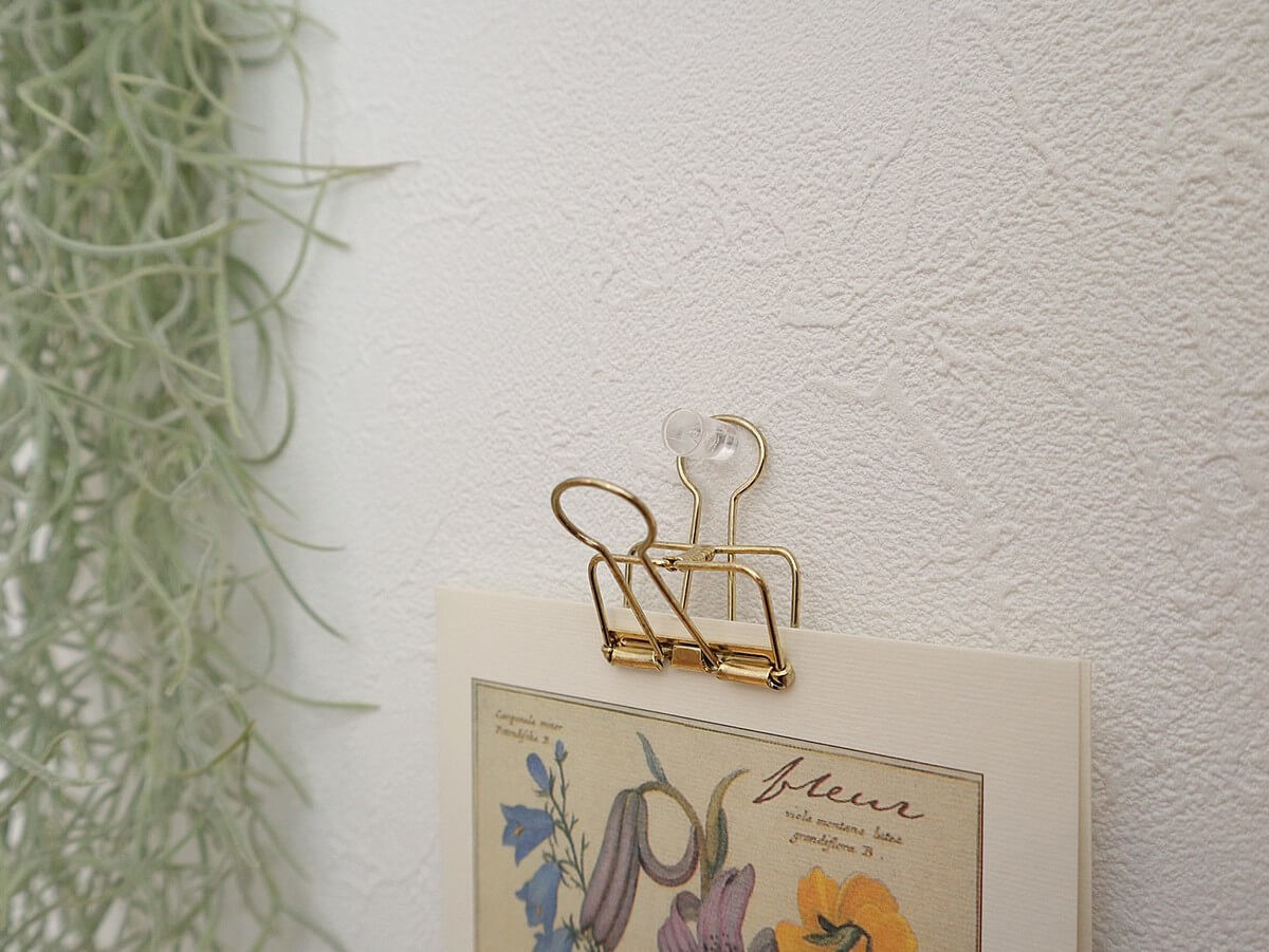 私はクリップを使用していますが、大切な写真やポスターにもピン跡が残りにくいので、おススメです。