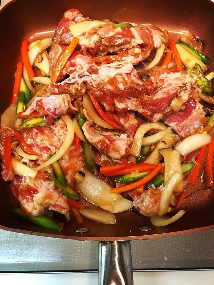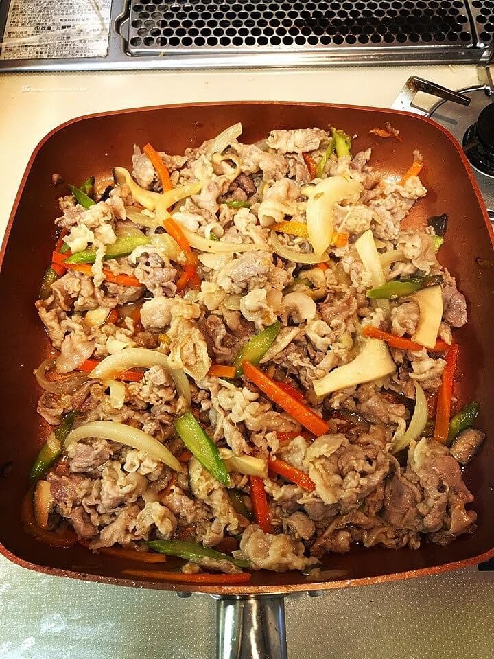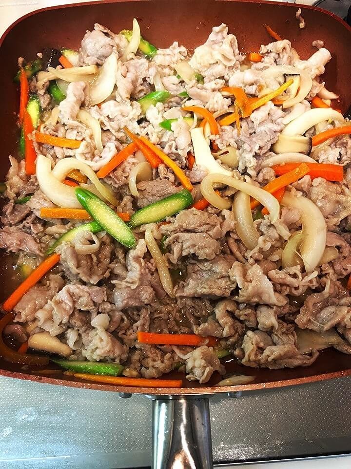 我が家は、娘が牛肉が少し苦手なので、豚バラ肉に変更し、具材も増やしました。