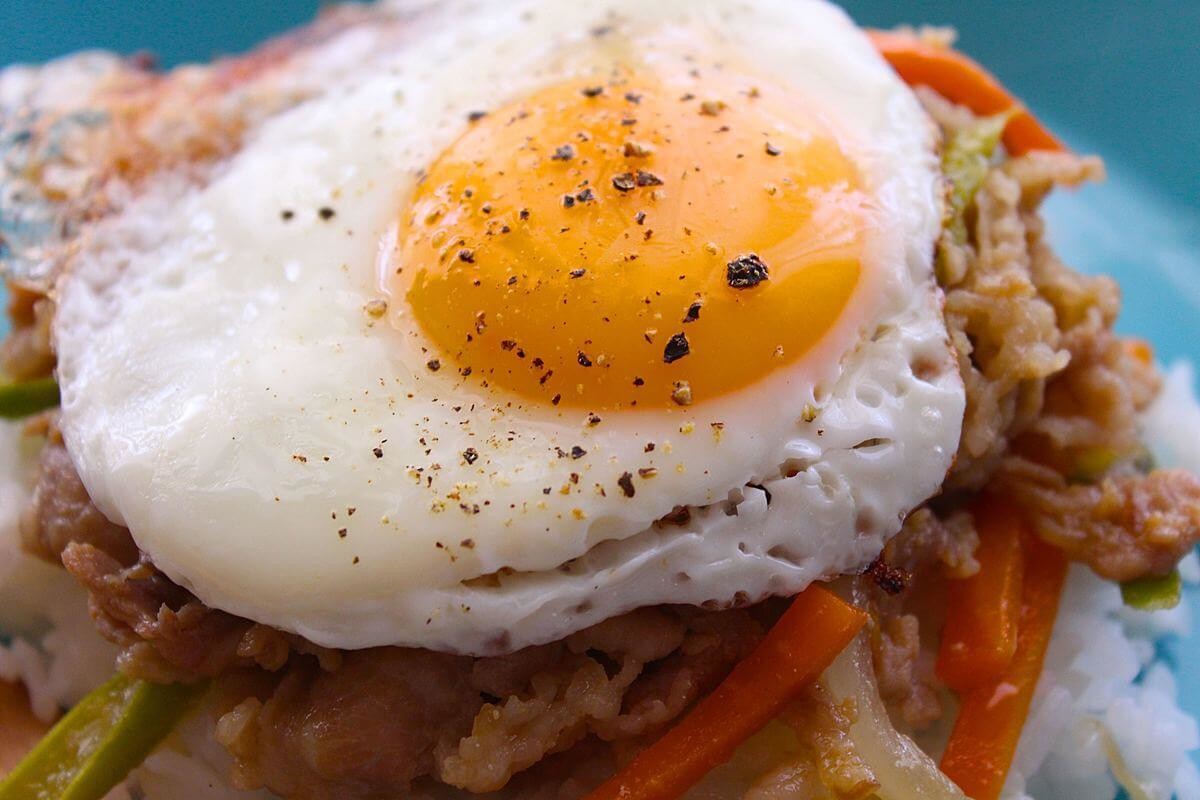 (2)熱したフライパンに油大さじ1を入れて、(1)を炒めます。