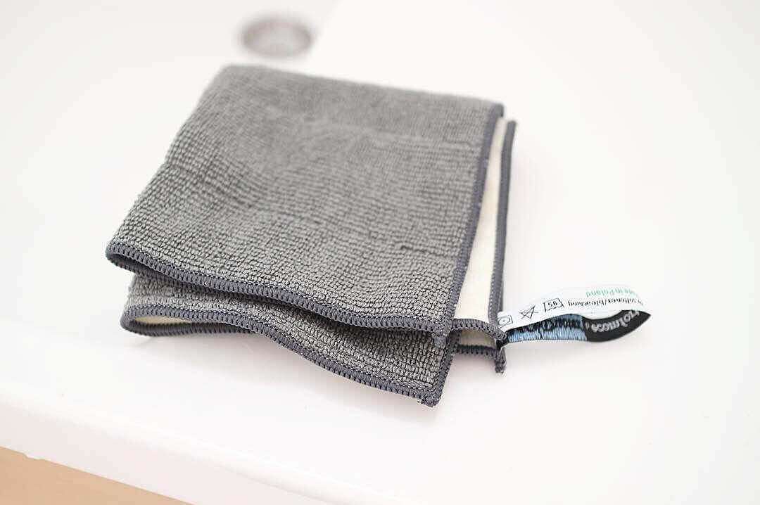 洗面所は毎日こまめに拭き掃除。そこで活躍するのが裏表で素材が違い使い分けられるテックスクロスというタオル。