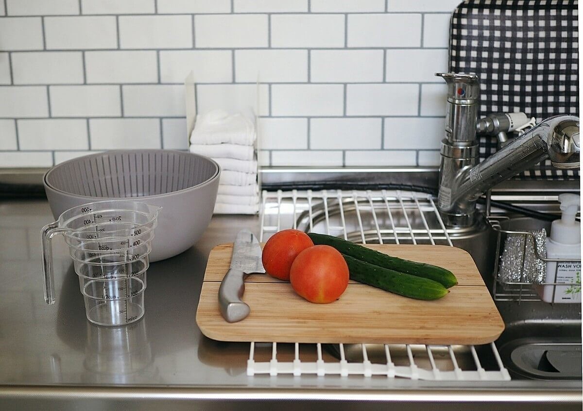 作業スペースを広くするために、思い切っていちばん場所をとっていた水切りカゴを断捨離することにしました。