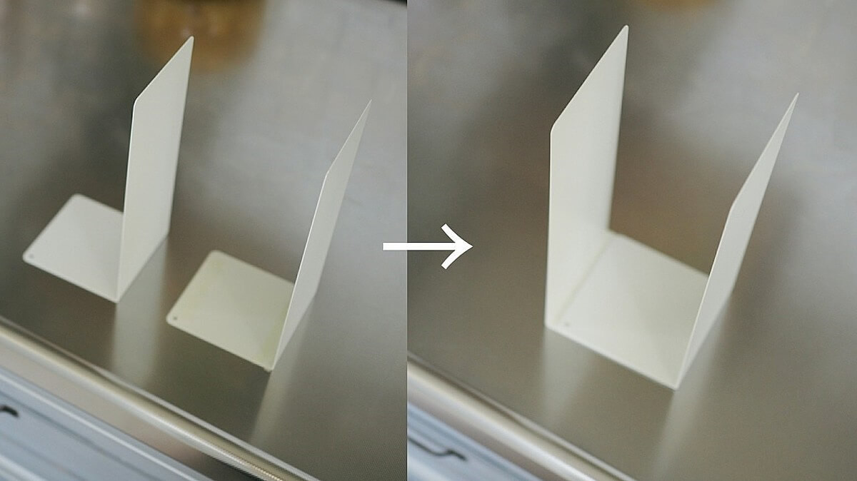 ちなみにこのクロスを収納しているケース、実はブックエンドを両面テープで連結して作ってます。