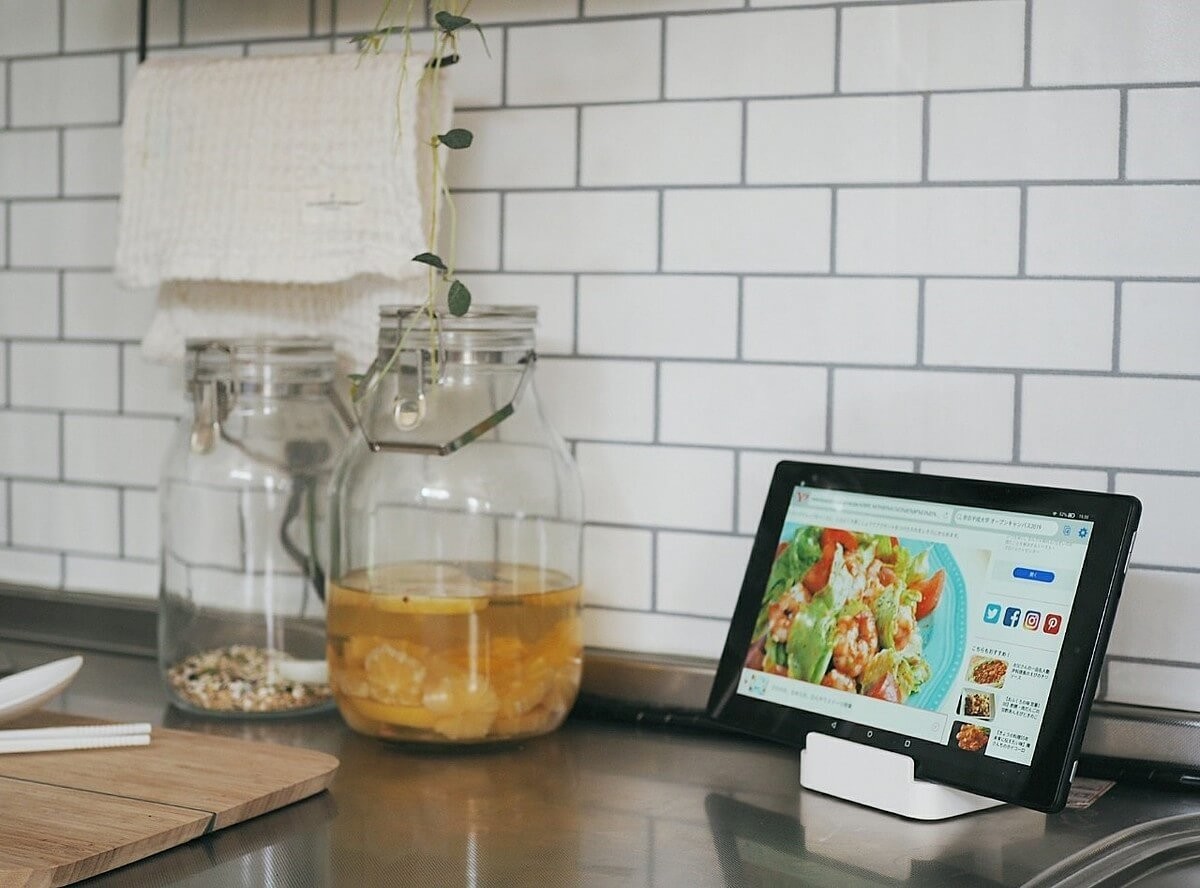 例えば、お料理中のタブレットやお料理本のスタンドに。