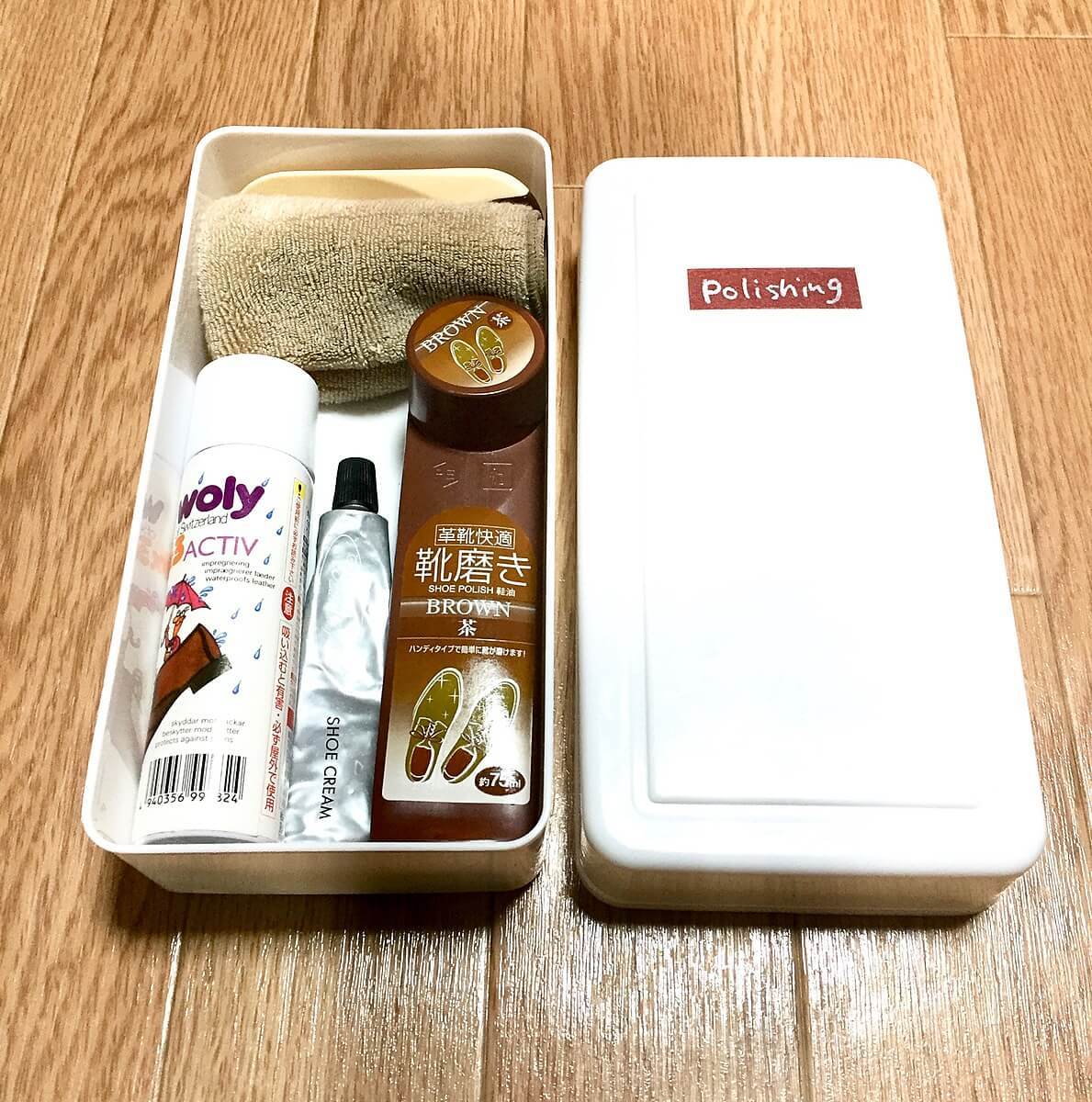このサイズって、ちょっとした小物類を整理するのにぴったりなんです。わが家では、裁縫グッズと靴磨きセットをこの中に入れて活用しています。