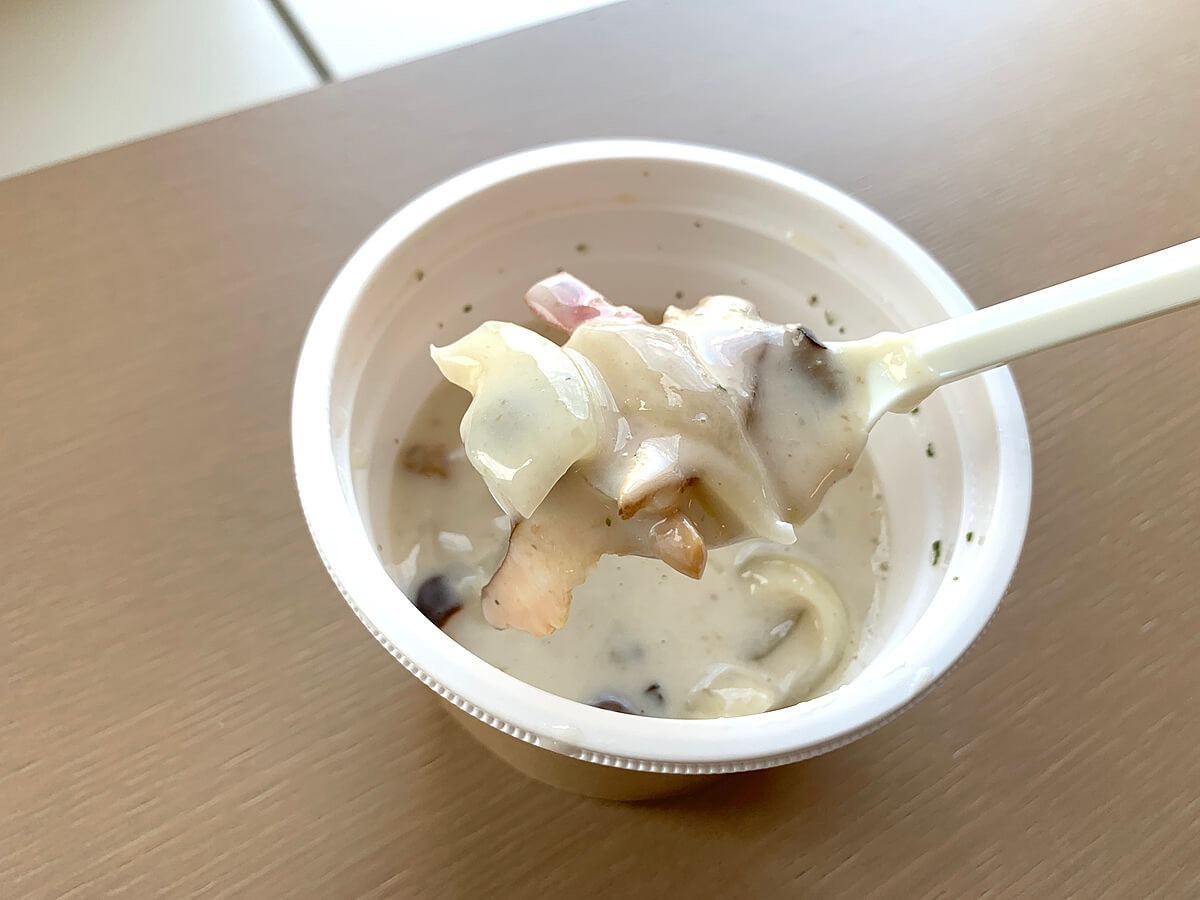 温かい飲み物と合わせるなら、ホットラテか、最近ドハマり中のきのこクリームスープ合わせもおすすめ。