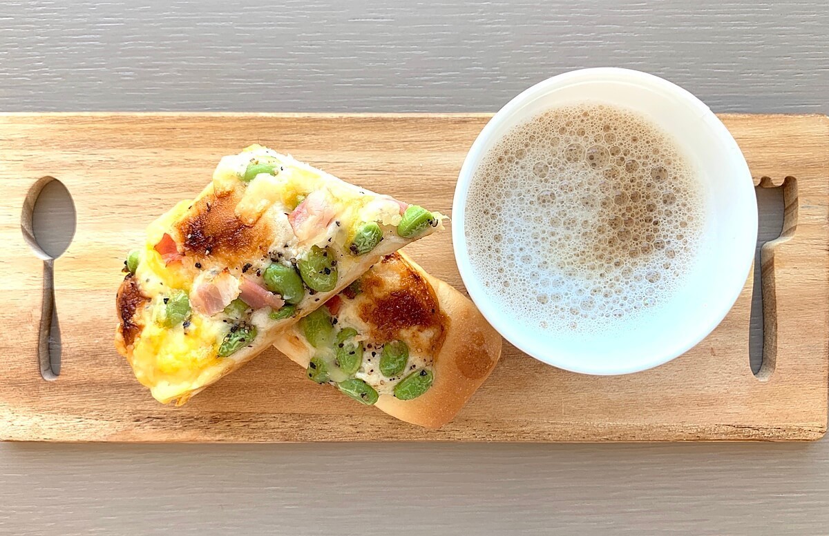枝豆パンに、枝豆のお惣菜を合わせるところがミソです。