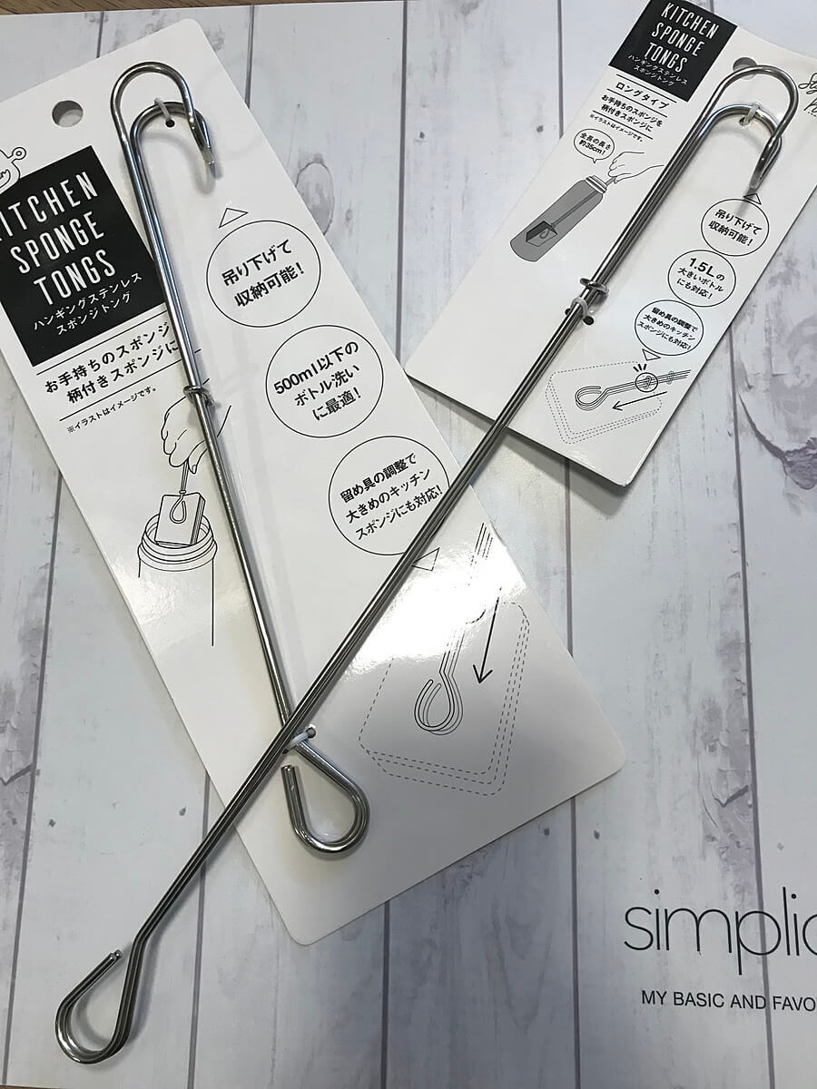 以前よりセリアあった、500ml以下のボトルに使えたスポンジトングに続き、1.5Lボトルにも使えるようになった、ロングタイプも仲間入り。