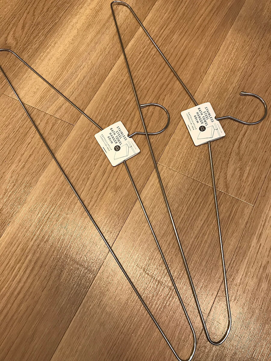 普通の衣類用ハンガーの倍近くあるサイズなのに、同じ100円(税別)とは、もはや見た目にもお得感しかないですよ!笑。