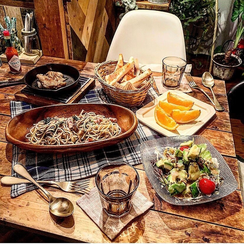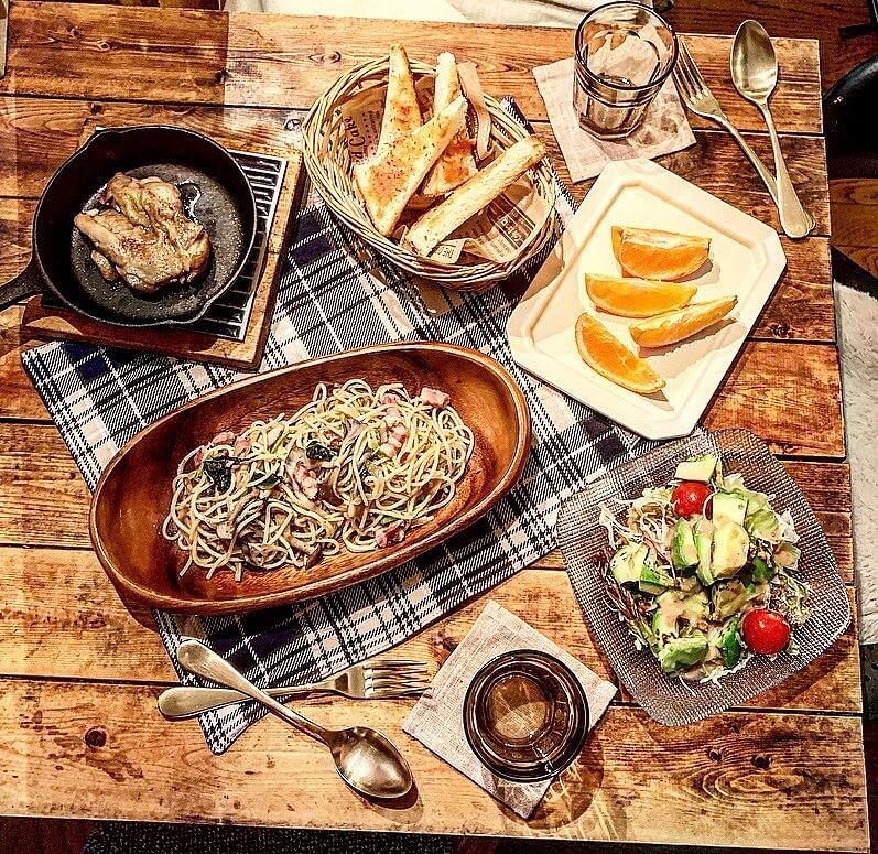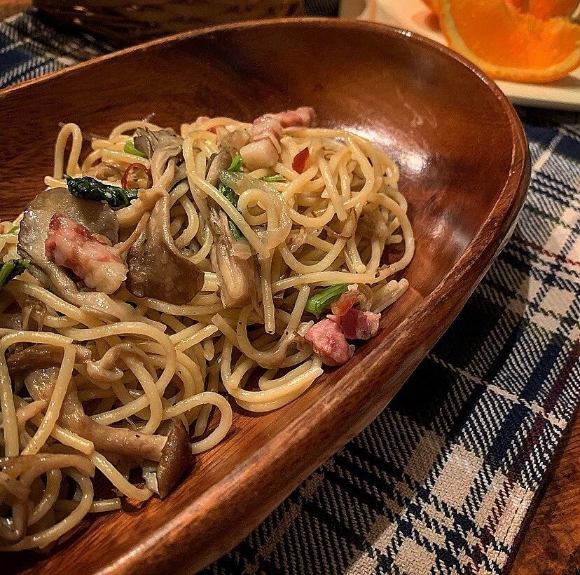 色のトーンが暗めの器にお料理を盛ってみたり、あたたかみを感じるアイテムなどを取り入れて、少し寒くなり始めた季節のコーデにあたたかみを演出してみました。