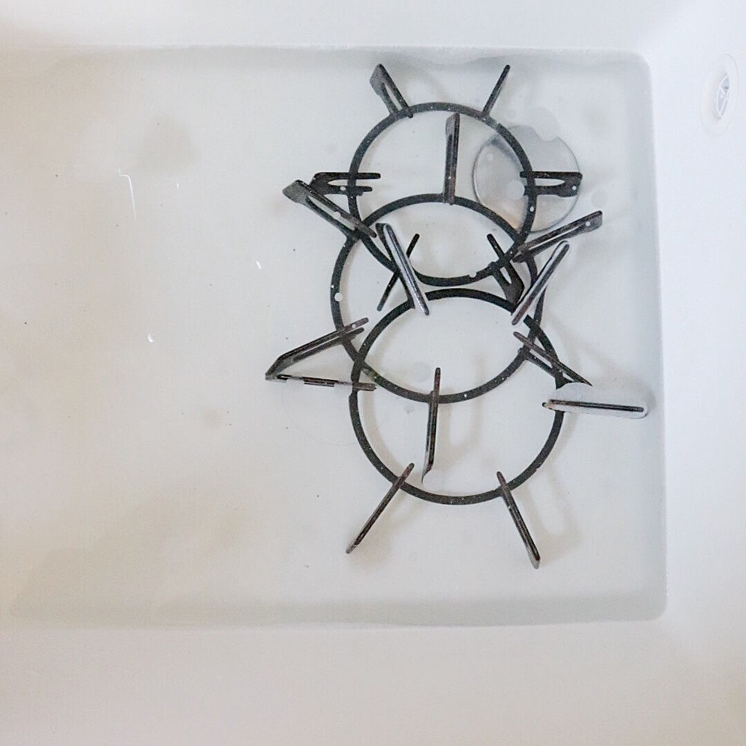 オキシクリーンによって五徳が綺麗になった頃、わたしが歯磨きをしに来ます。 その時に水で流せば汚れ知らずの五徳に。