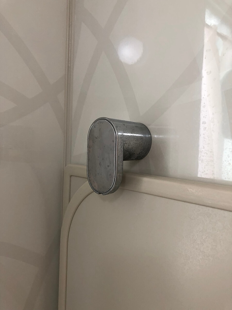 こちら最初に出てきたお風呂のフタのストッパー。 撮ってる私のスマホが鏡のように映り込むくらいにつるんつるんに。