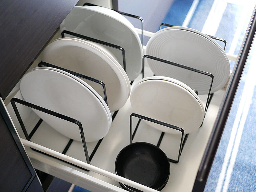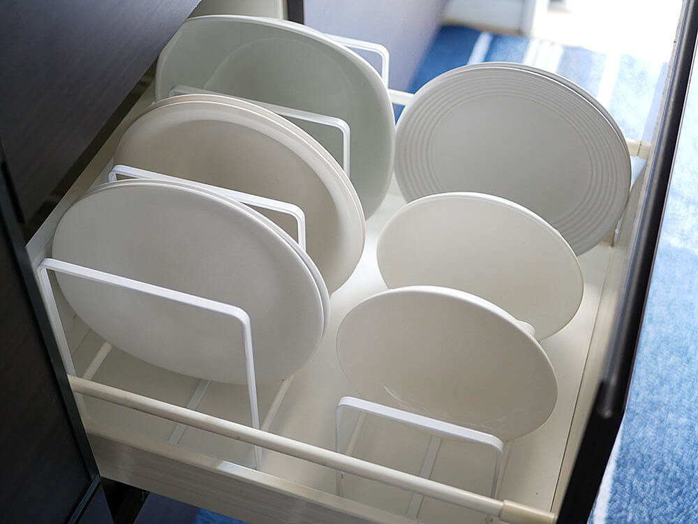 どちらもサイズごとにお皿の収納ができ、重ねずしまえるので取り出しも楽チンです。
