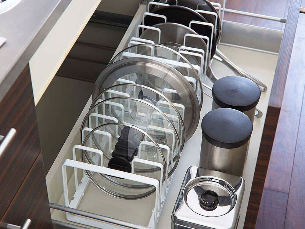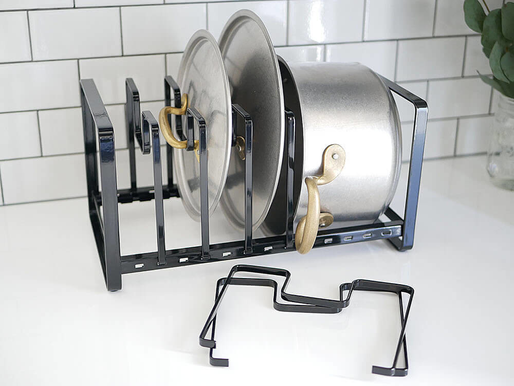 仕切りを手で簡単に取り外すことができるので、サイズに合わせて上手に収納ができます。取っ手を保管して入れば、また新しい調理器具を購入しても収納の心配がありませんよ。