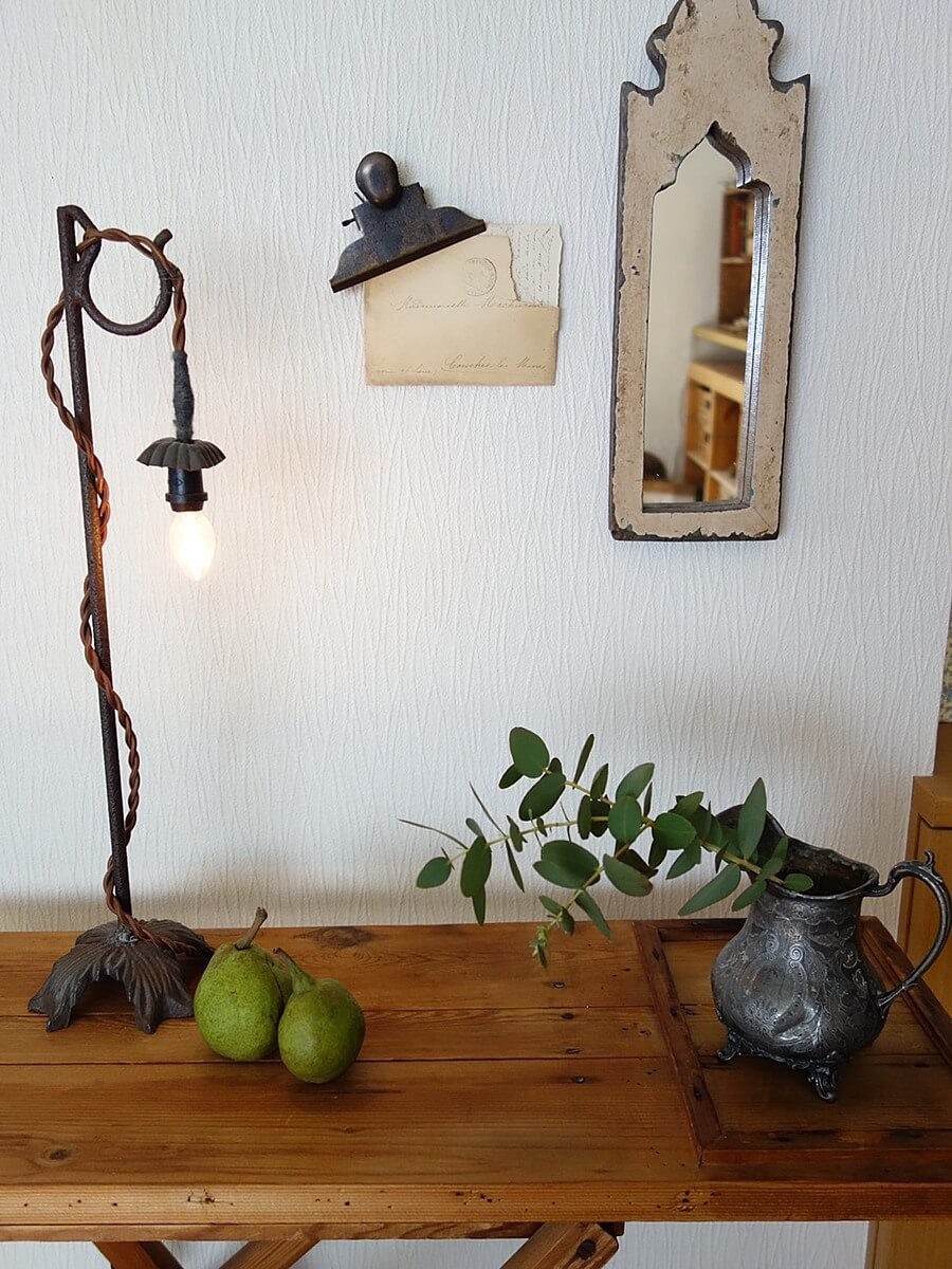 籠と一緒に飾ったランプは、以前働いていた職場の仲間からいただいた大切なランプ。灯りを灯す度にみんな元気かなぁ~と思い出してみたり。