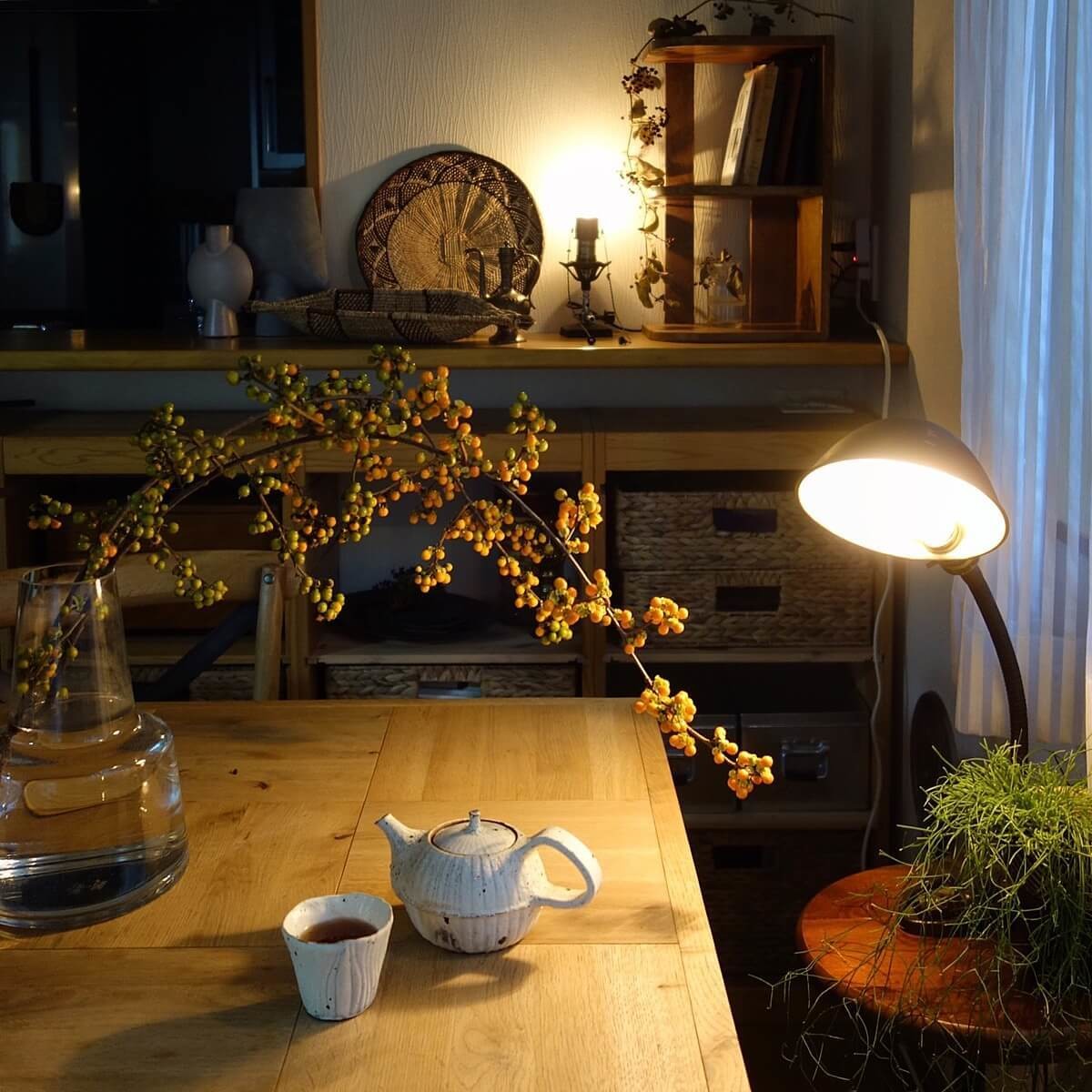 夕方の家事の合間のひと時にランプの灯りや季節の植物に癒されて、ほっとひと息ついたり。
