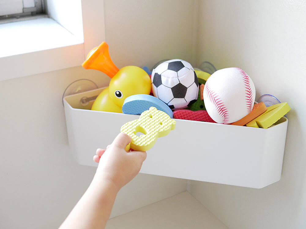 毎回1つ1つ拭いてどこかに収納するのは大変だし、だからと言って散らかりがちなおもちゃをそのままバスルームに置いておくのは、カビの発生も気になるし掃除の際にどかすのも手間に……。