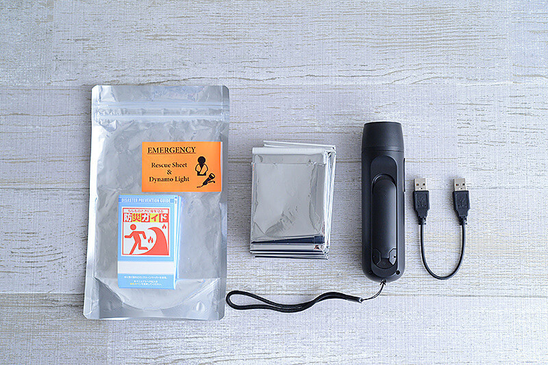 しかもこのライト、防寒に役立つアルミシートと、お役立ち情報満載の防災ガイドもセットになっているんです。