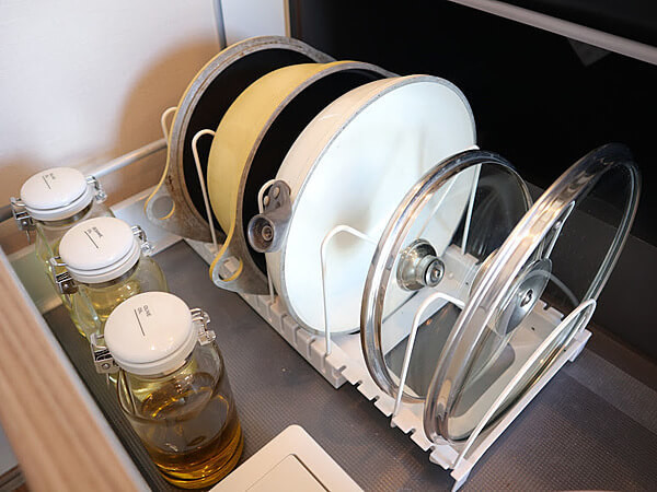 フライパンなど重ねずに収納できていることで、何がどこにあるか一目瞭然!
