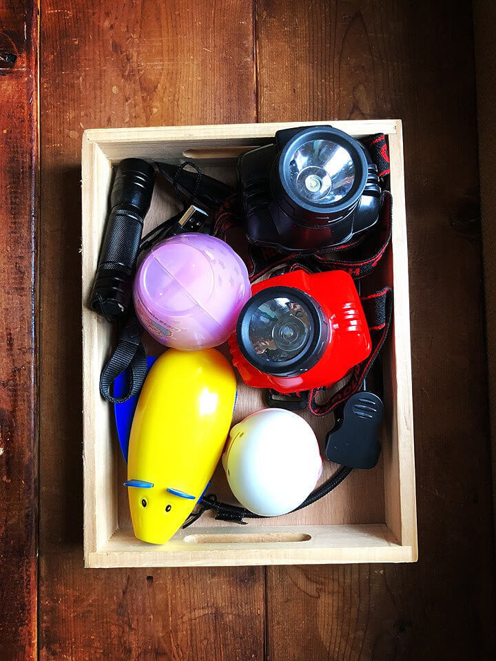 まず第一に、ライト類はすぐ出せる場所に置くことが肝心!