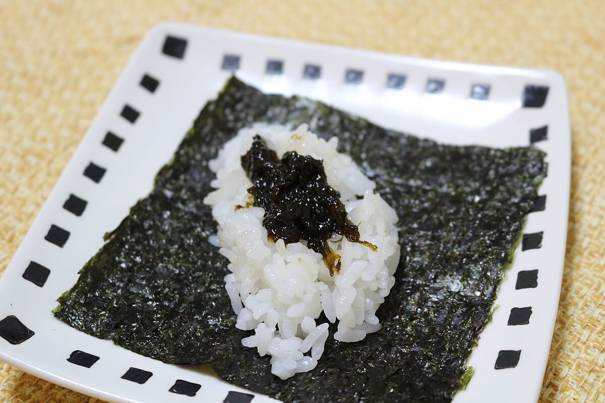 海苔の佃煮をさらに手巻き風にすると……アレ、まさかの、めっちゃ美味い!!