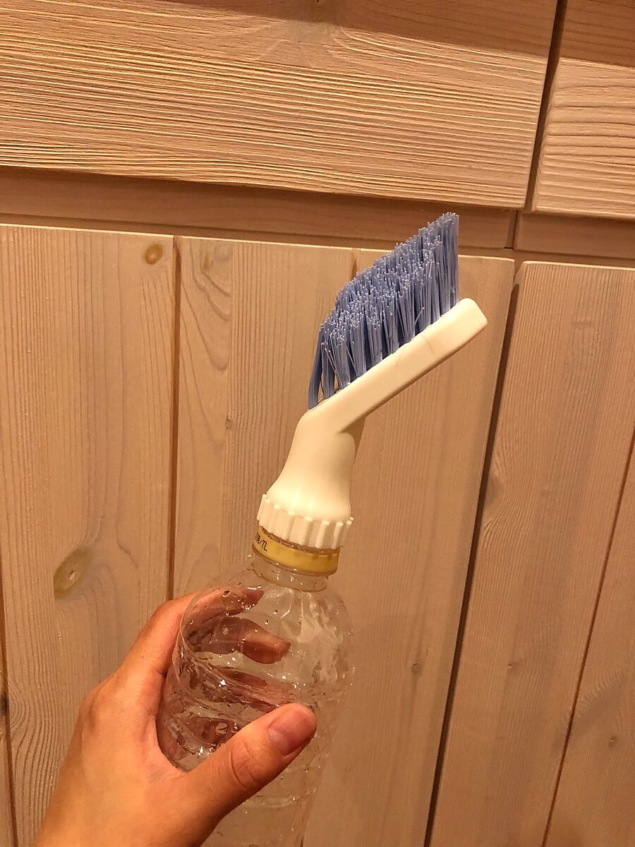 掃き出し窓のレールの汚れをとるのに使用しているペットボトルブラシを使ってみたり。