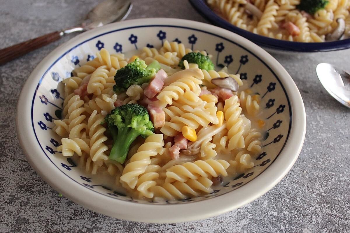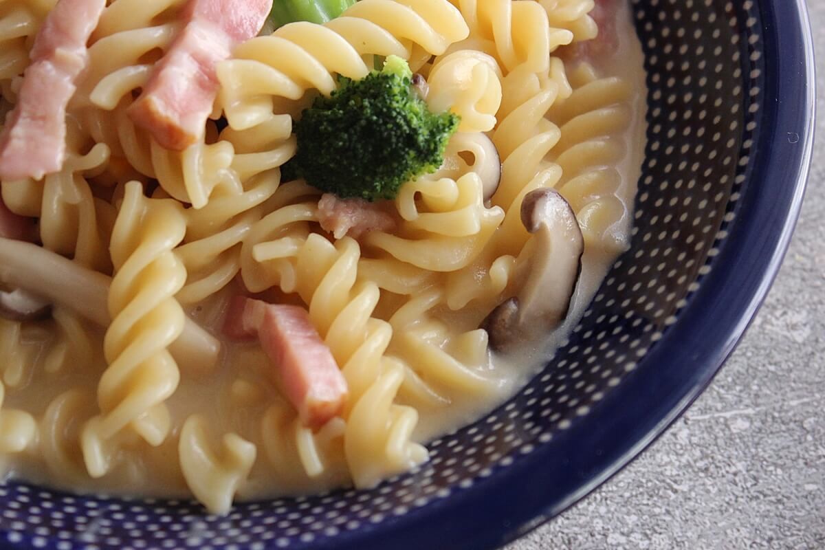 シチューのルーを使って作る簡単クリームパスタも、チキンストックでさらにおいしくなりました。
