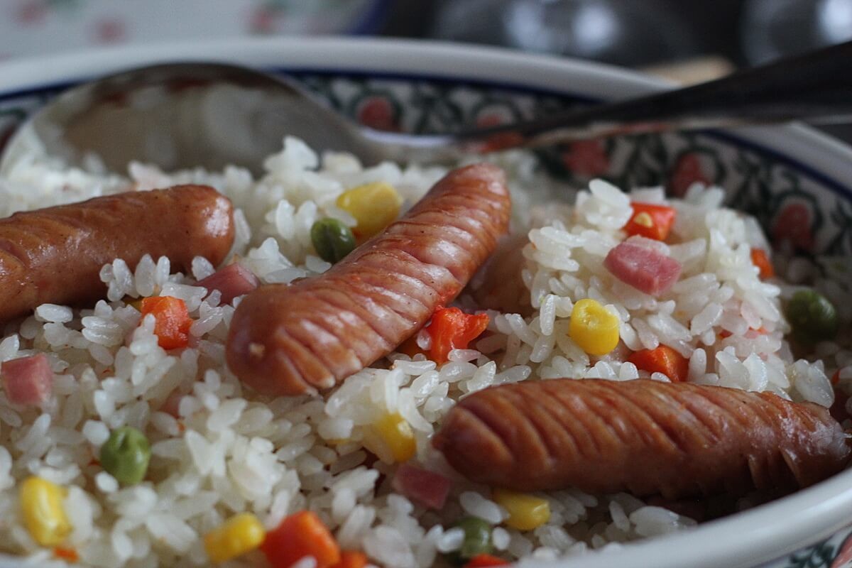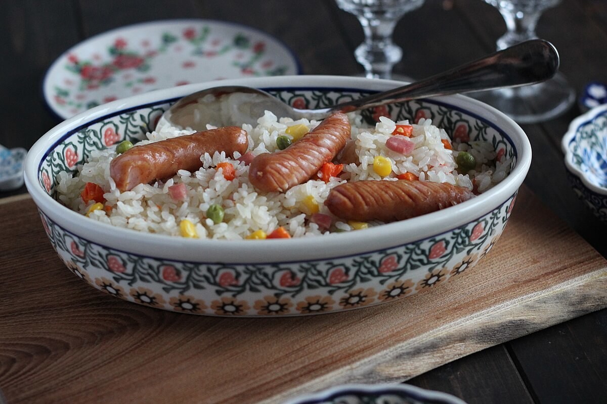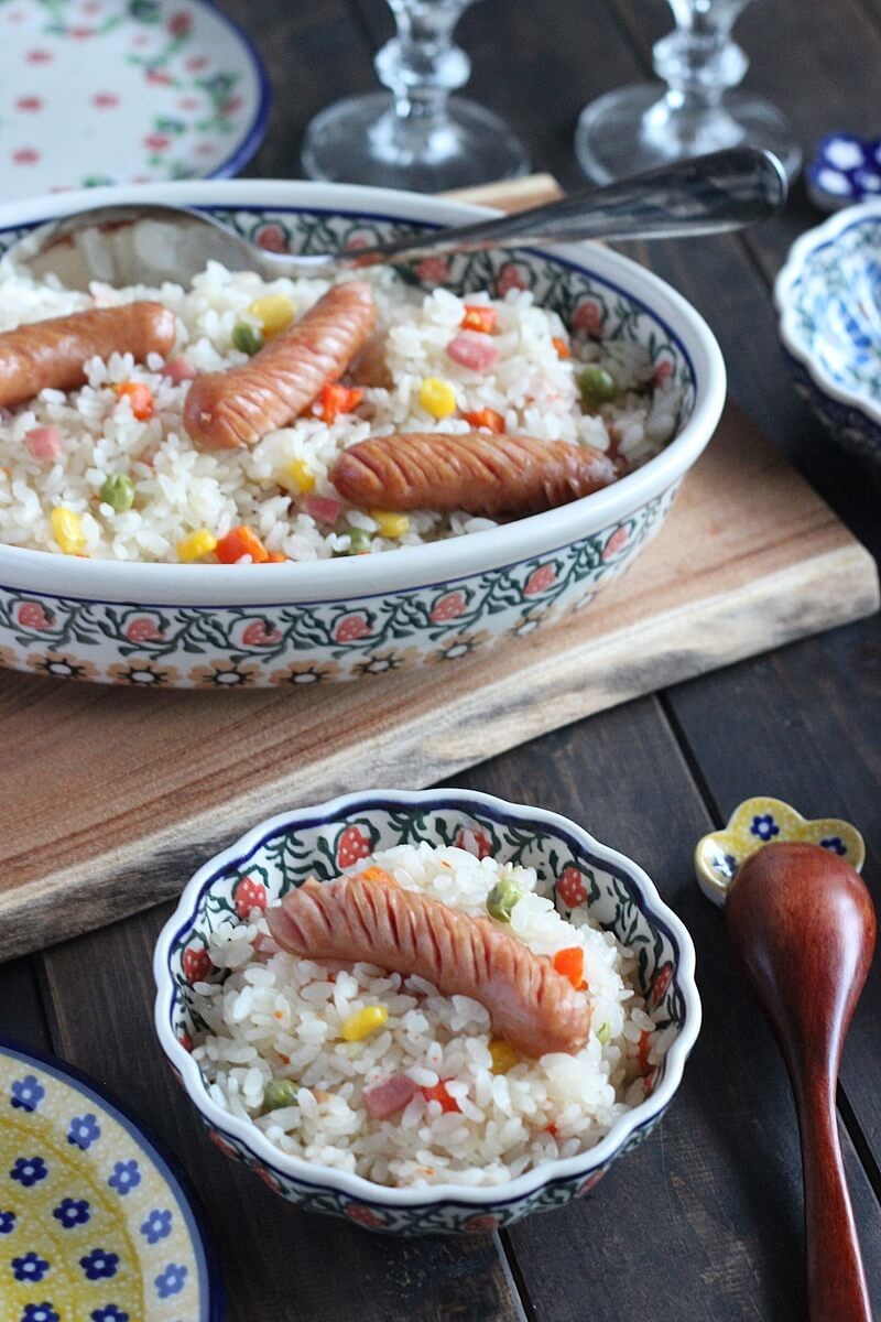 ウィンナーに切れ込みを入れてあることで、出汁が出てご飯に染み込みますし、丸ごと使うことで見栄えもします(笑)。