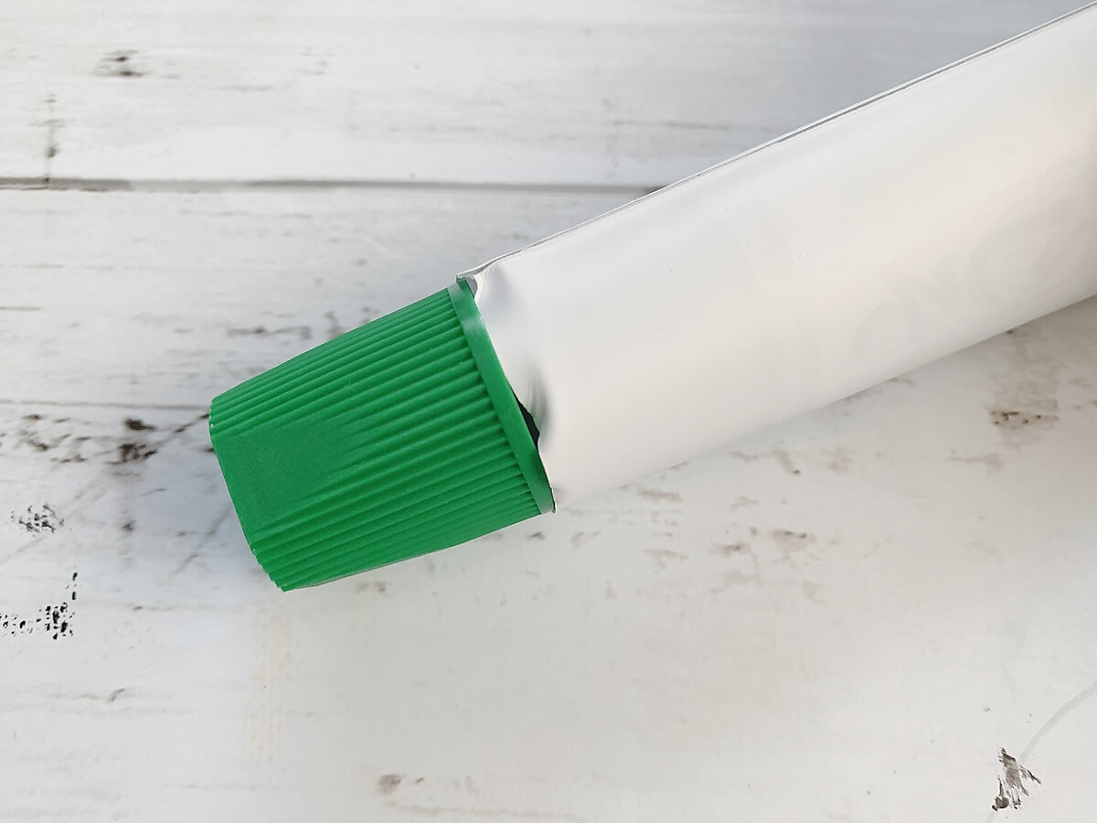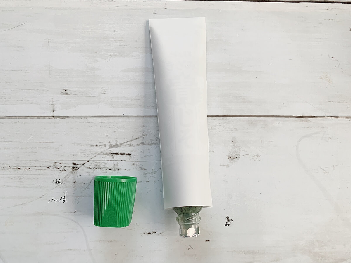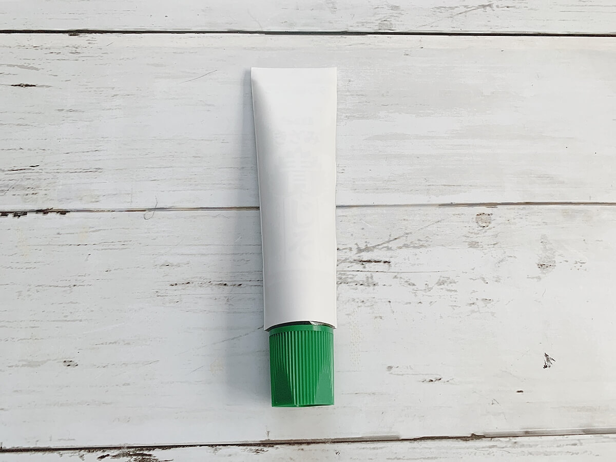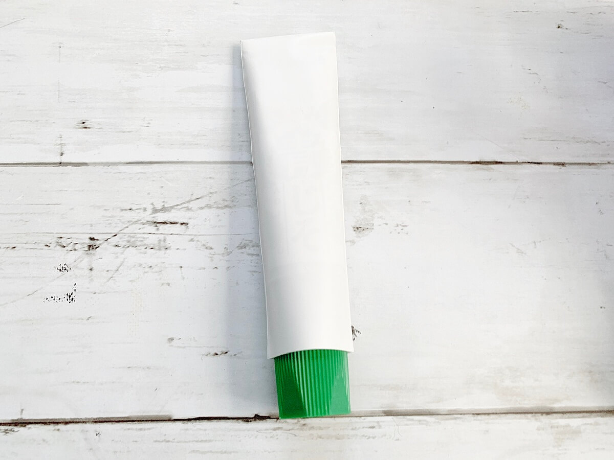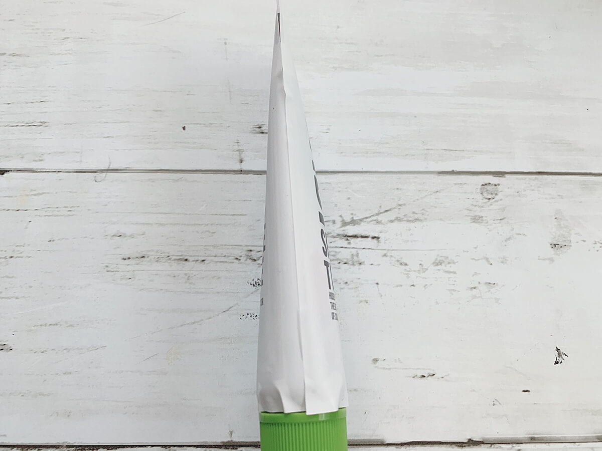 画像では、よくある標準のチューブのサイズを使用していますが、こちらのチューブはシールの折り目より少し間を開けると丁度よく貼り付けれます。
