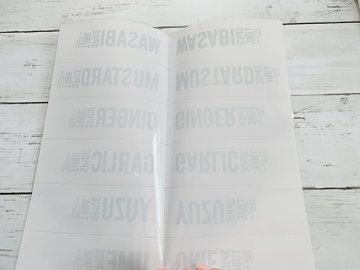 種類ごとにシールが切れていますが、薄いので気をつけながら剥がします。