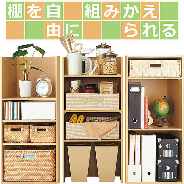 ニトリのカラーボックスは他社から販売されているものに比べて、棚の位置を細かく動かすことができます。これによって、収納するアイテムに合わせて棚の幅を精密に設定できるので、コンパクトなカラーボックスでも数多くのアイテムを収納することができますよ。