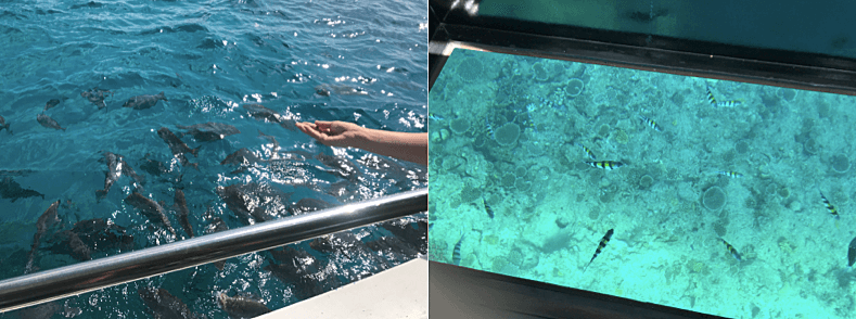 グラス底ボートでは船底のガラスから魚たちを見ることができます。浅瀬から沖まで海底の景色や魚の種類が次々に変わっていくのは迫力がありますよ。
