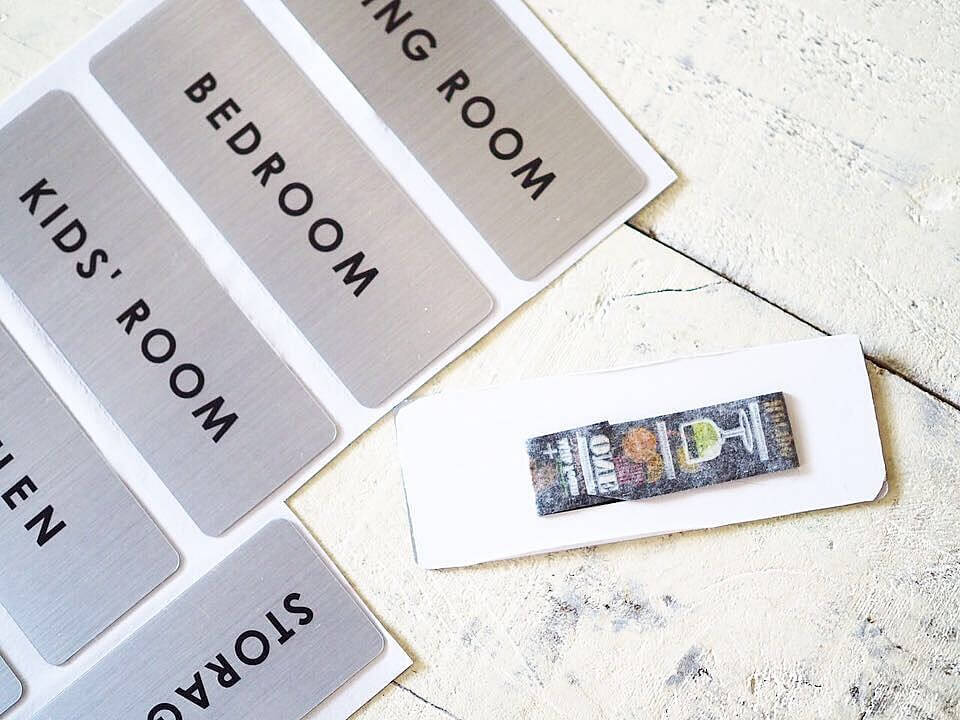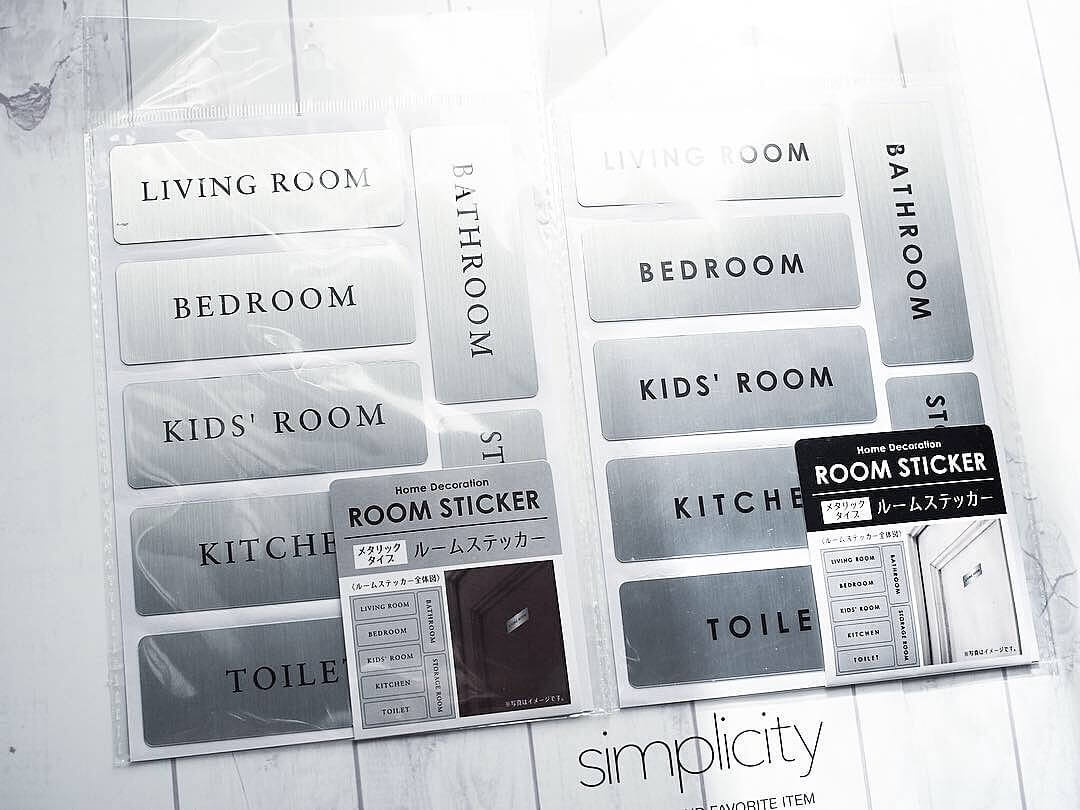 1シートにリビング・バスルーム・トイレ・寝室など、7部屋分のステッカーが入っているので、100円(税別)で家中のドアプレートをカバーできます。驚きです!