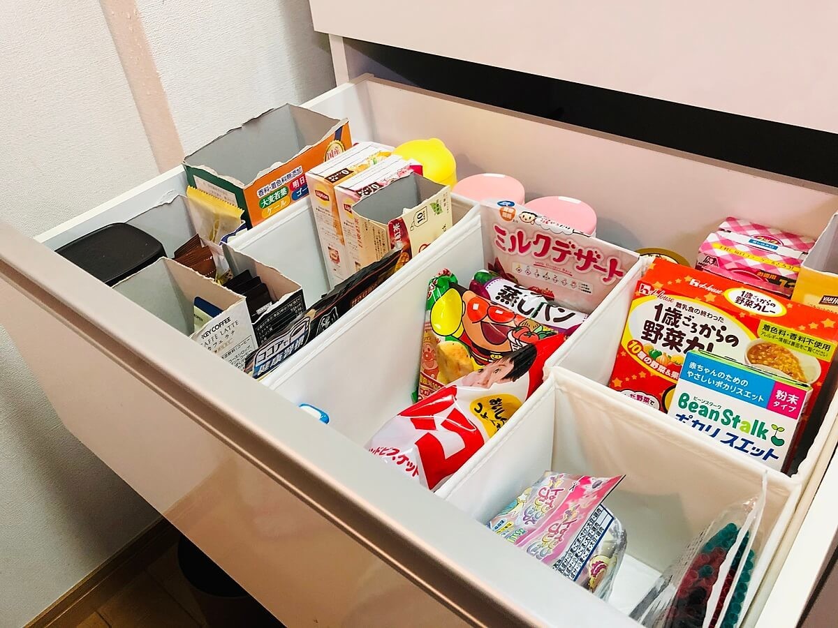 少し前ですが子どもがまだ赤ちゃんで離乳食全盛期の頃は、“いざ”というときのレトルトの離乳食がここにいっぱいに詰まっていました(笑)。