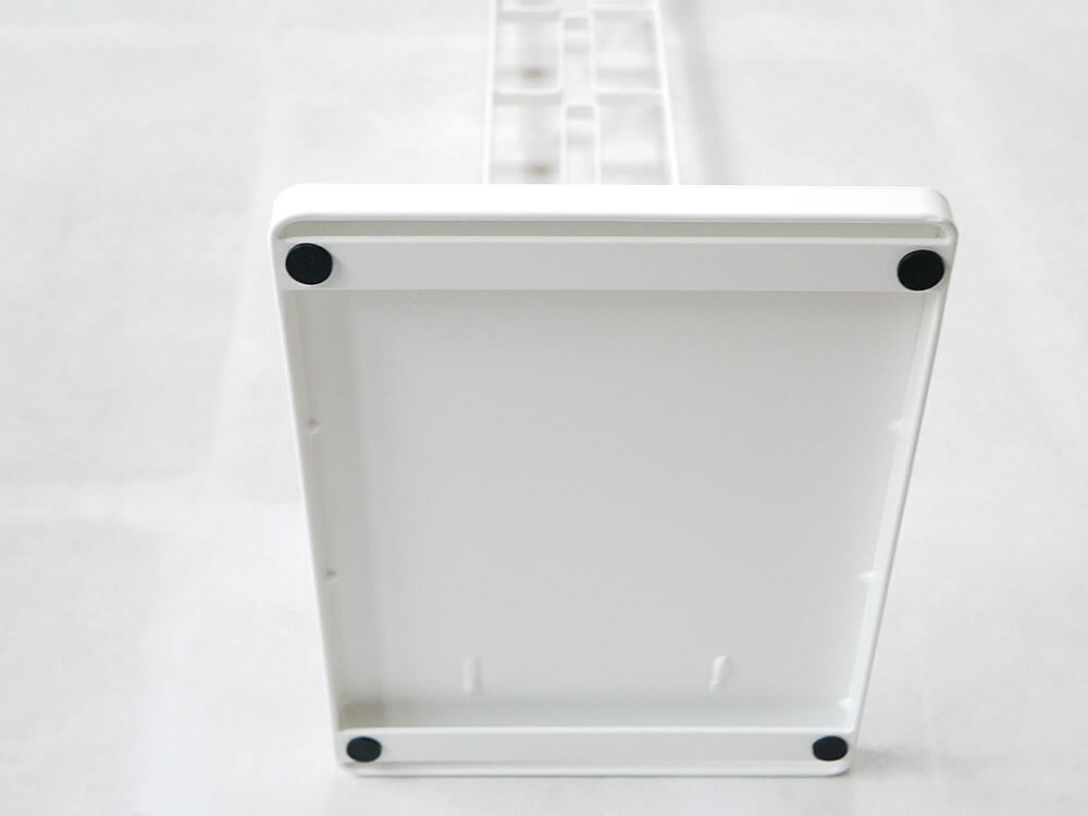 底面の4箇所には緩衝材が付いているので、床を傷つける心配なくご使用できます。