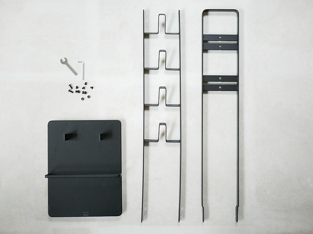 組み立て式ですが、土台と2種のフレームを付属のビスで止めるだけで簡単に組み立てできます。